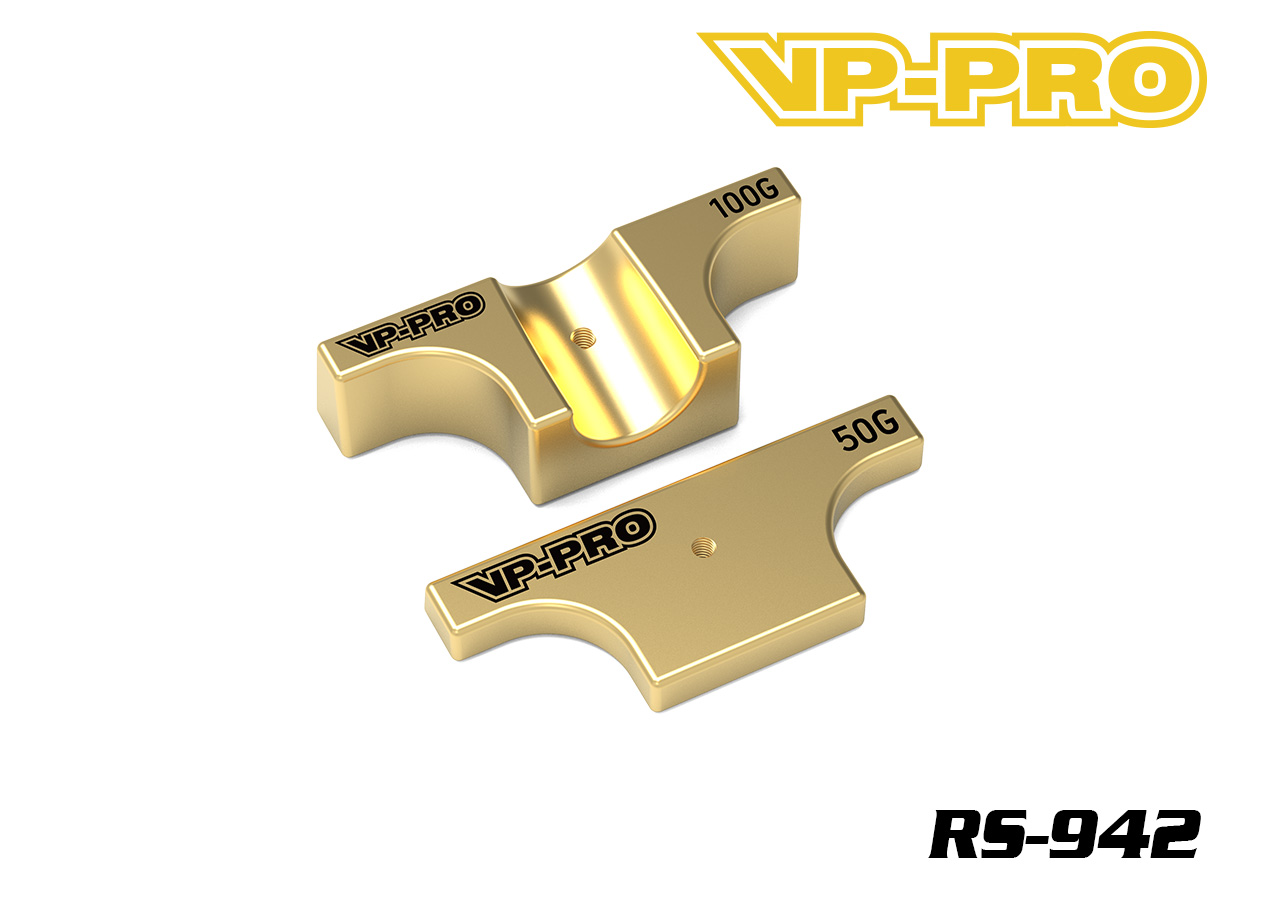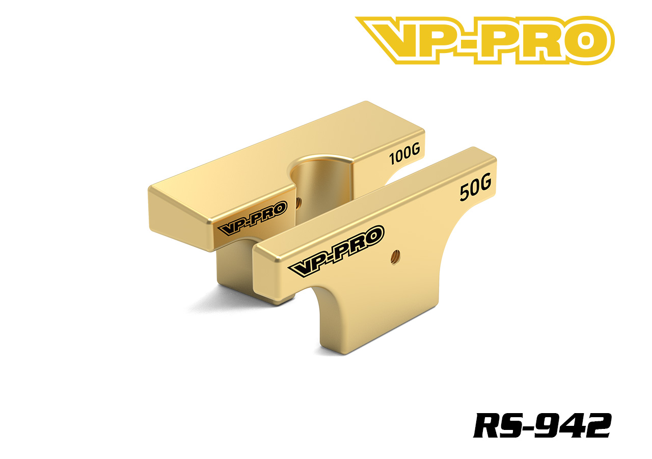 Intended for use with Infinity IFB8. Machined from high quality brass, and designed to perfectly fit to the chassis while leaving the necessary space in order not to affect the chassis flex. No modification is required and laser-etched VP-Pro logo as well as their weight indicated. Available in 50g and 100g. Each pack contains a 50g and 100g individually packed.